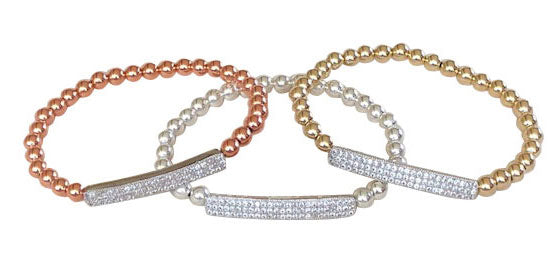 Crystal Bar with either Rose Gold, Sterling Silver, or Gold Filled 5 Millimeter Beads - They will look great alone or you can stack them with other bracelets. Perfect to Mix and Match!